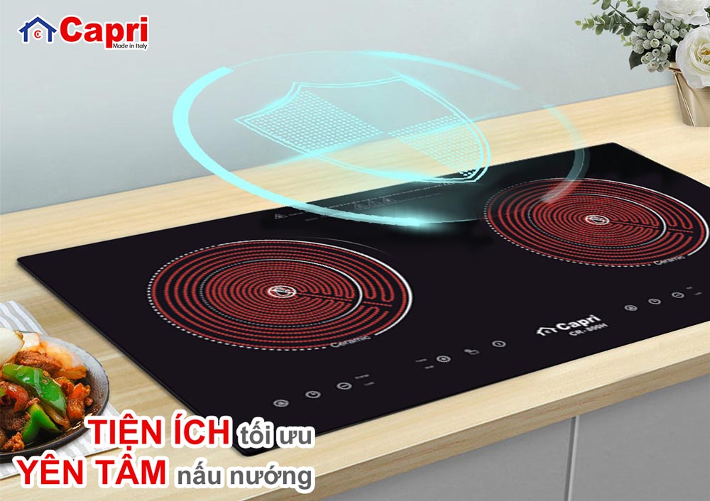Là thiết bị nhà bếp thông minh, bếp hồng ngoại rất được lòng các bà nội trợ. Bếp hồng ngoại Capri hoạt động dựa trên nguyên lý bức xạ nhiệt từ tia hồng ngoại và chủ yếu được sử dụng để nấu nướng trong gia đình, quán ăn... Bếp hồng ngoại biến điện năng thành nhiệt năng qua các dây điện trở và làm nóng đáy nồi, cuối cùng là làm chín các loại thức ăn. So với bếp gas truyền thống, sử dụng bếp hồng ngoại đem lại rất nhiều lợi ích.